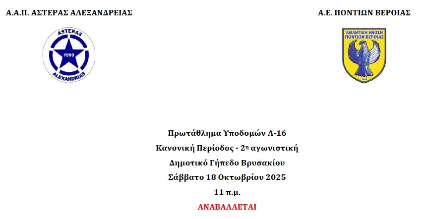 Αναβολή Αγώνα Πρωταθλήματος Υποδομών Κ-16