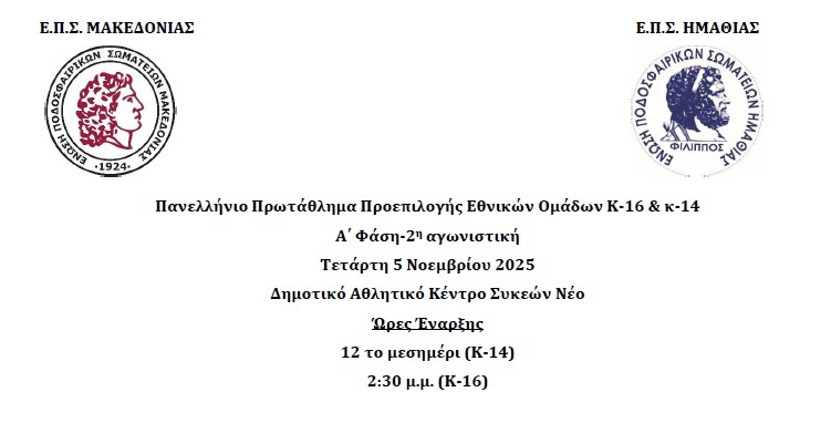 ΕΠΣ Μακεδονίας - ΕΠΣ Ημαθίας την Τετάρτη 5/11/2025
