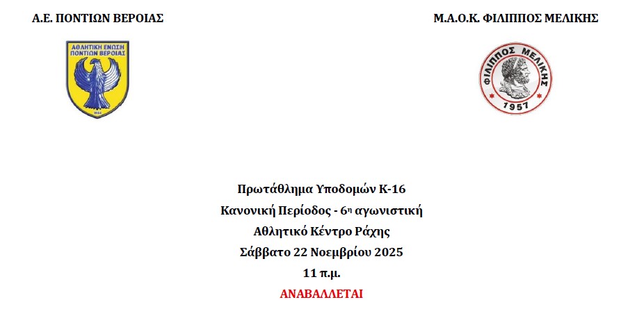 Εβδομαδιαίο Πρόγραμμα Πρωταθλημάτων Υποδομών (ορθή επανάληψη)