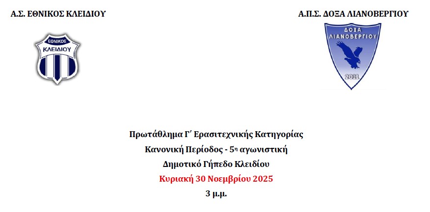 Εθνικός Κλειδίου - Δόξα Λιανοβεργίου την Κυριακή 30/11