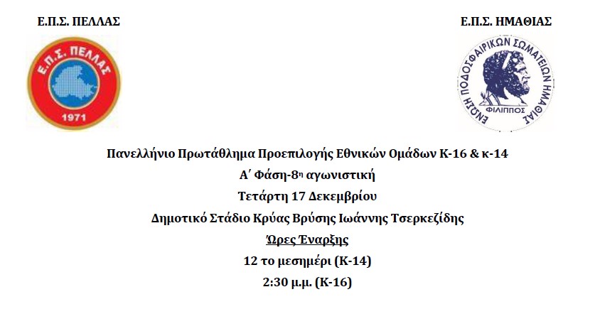 ΕΠΣ Πέλλας - ΕΠΣ Ημαθίας την Τετάρτη 17/12/2025