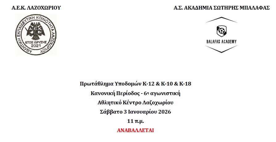 Εβδομαδιαίο Πρόγραμμα Πρωταθλημάτων Υποδομών